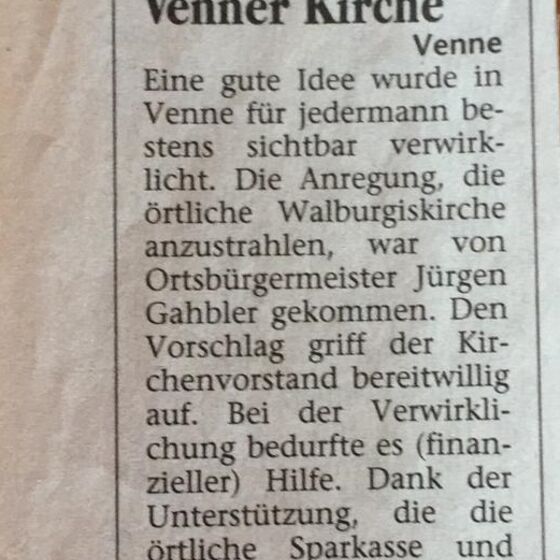 1885, in der Amtszeit von Pastor Friedrich Knoke (in Venne 1881-1892), wurde während des Gottesdienstes ein Besucher in der Kirche vom Blitz erschlagen. Unter Pastor Adolf Mielke, der 1892 nach Venne kam, veränderte sich das Gesicht der Kirche, z. B. durch Anschaffung einer neuen Turmuhr, eines neuen Taufsteins und des Altarbildes. Der Forschertätigkeit dieses glühenden Patrioten verdankt Venne die Aufstellung der Stammbäume fast aller eingesessenen Familien.